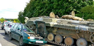 БМП раздавила легковой Volkswagen (ВИДЕО)