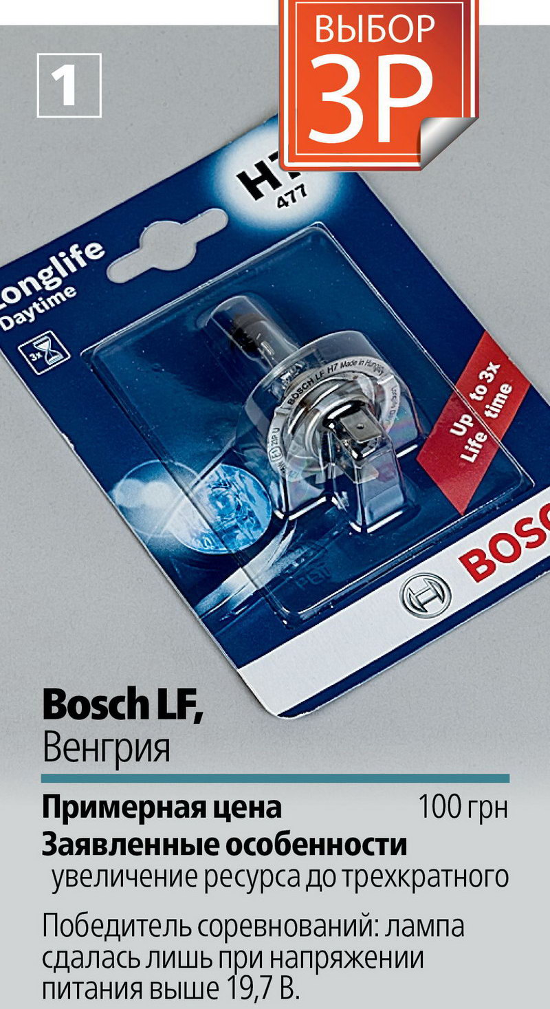 19,7 вольта! Чемпион по ресурсу – Bosch. Это единственная лампа, сохранившая работоспособность, выдавая более чем двойную мощность в сравнении с номиналом. Обещанное производителем увеличение ресурса вплоть до трехкратного похоже на правду.