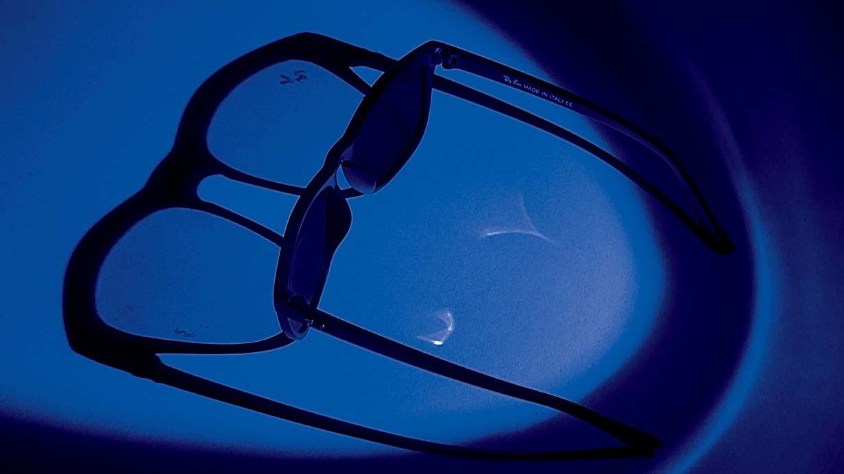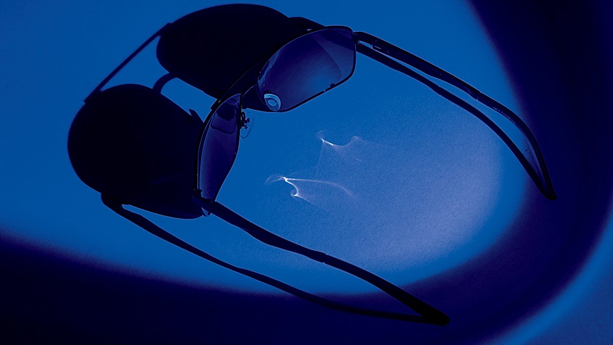 Идею материала подсказал наш неугомонный фотохудожник Костя Якубов. У него с оптикой сложились сугубо деловые отношения, а потому именно он в ходе очередной фотосъемки заметил, что луч от ультрафиолетового фонарика спокойно проникает сквозь стёкла солнцезащитных очков. Случайность?
