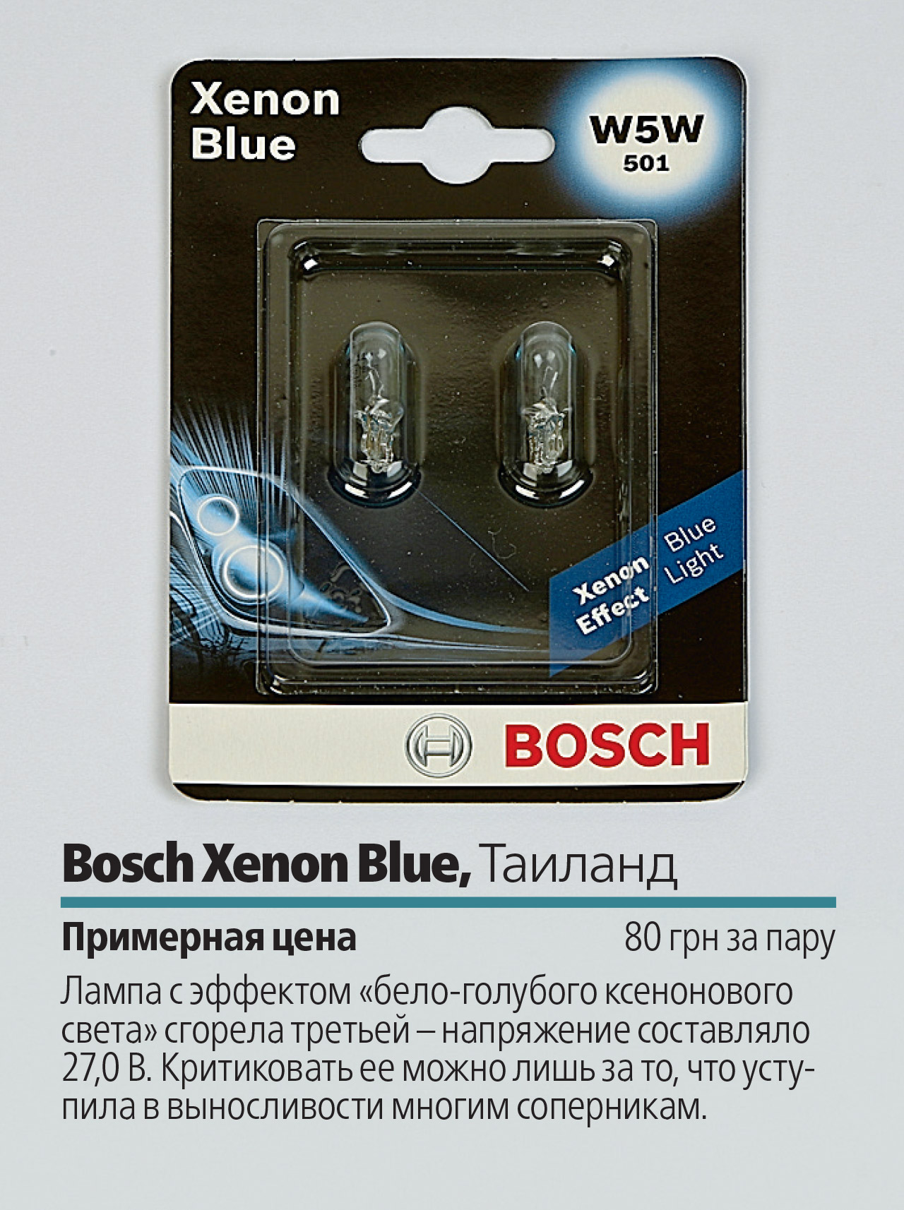 Еще четыре часа. Напряжение 27 В. Гаснет очередной «красавец» – на этот раз Bosch Xenon Blue. Еще через час умирает Osram Original.