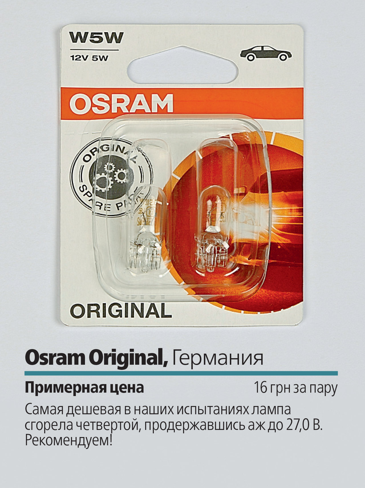 Габаритные огни, фонари освещения номерного знака, подсветка перчаточного ящика – это лишь некоторые места работы ламп W5W. А какие из них прослужат дольше?