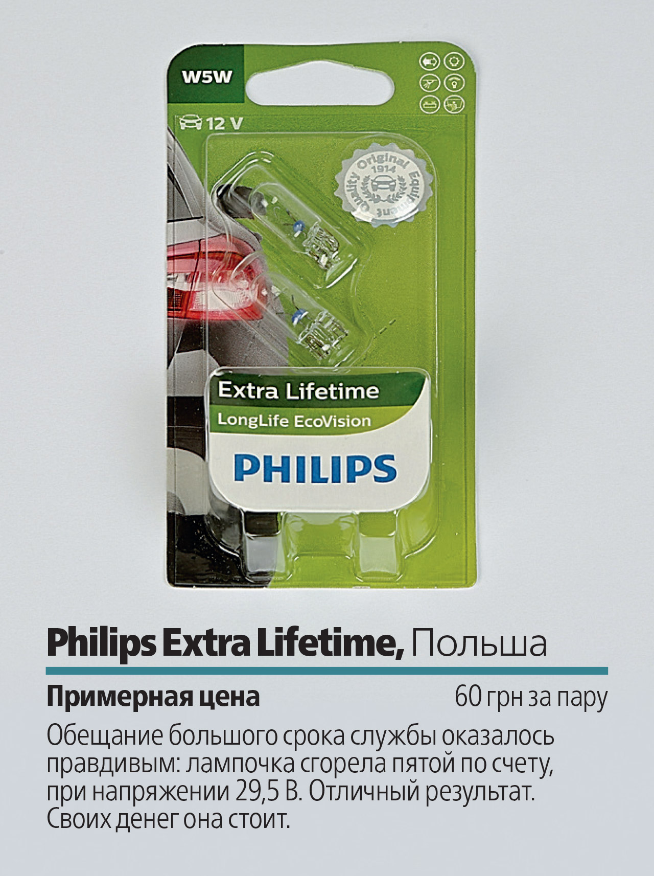 29,5 В! Первая потеря среди «долгоиграющих»: погас Philips Extra Lifetime. Еще через час гаснет обыкновенная Narva. 29,8 В! Перегорает последняя лампа накаливания – Osram Ultra Life. Что ж, перед нами действительно Ultra Life, то есть «сверхжизнь».