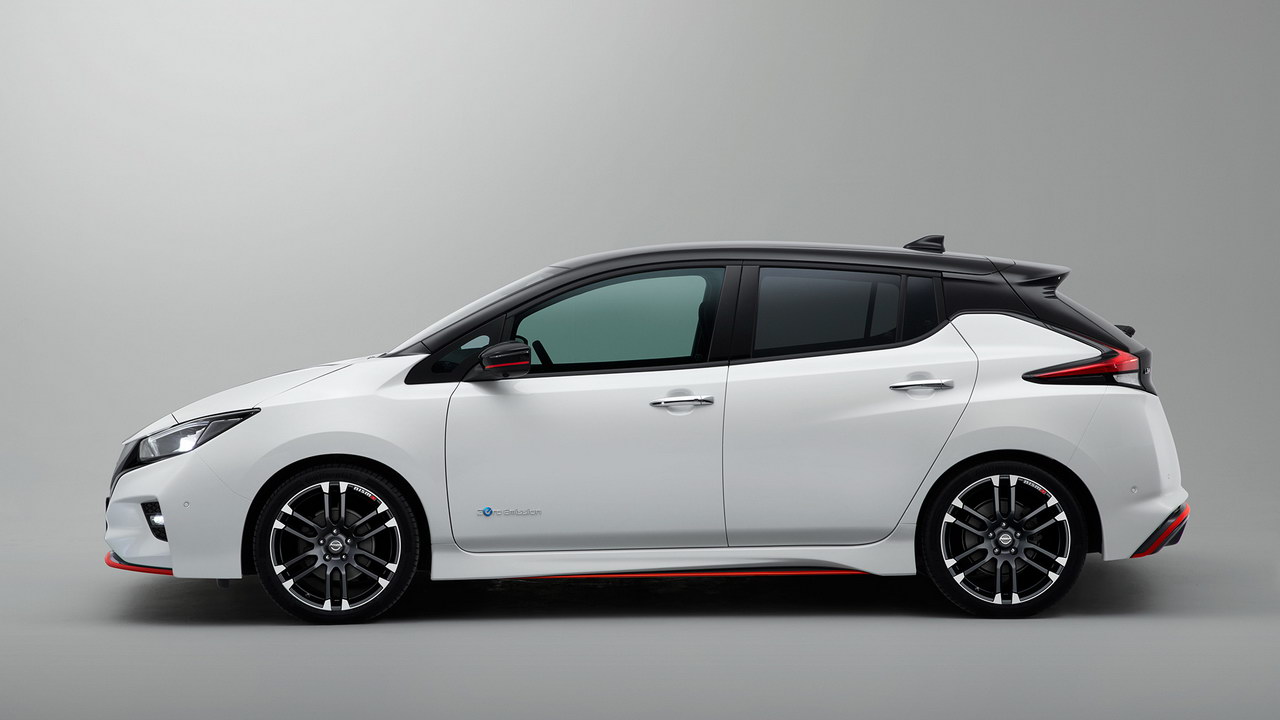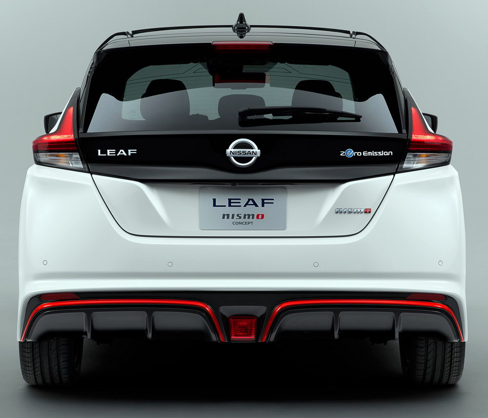 Первая из них — электрический Leaf Nismo, созданный на основе недавно представленного хэтчбека второго поколения. От стандартной модели электрокар отличается более агрессивными бамперами, рельефными накладками на порогах, массивным задним диффузором с противотуманкой по центру и крупными алюминиевыми дисками с гоночными шинами. У машины также перенастроена подвеска и занижен дорожный просвет.