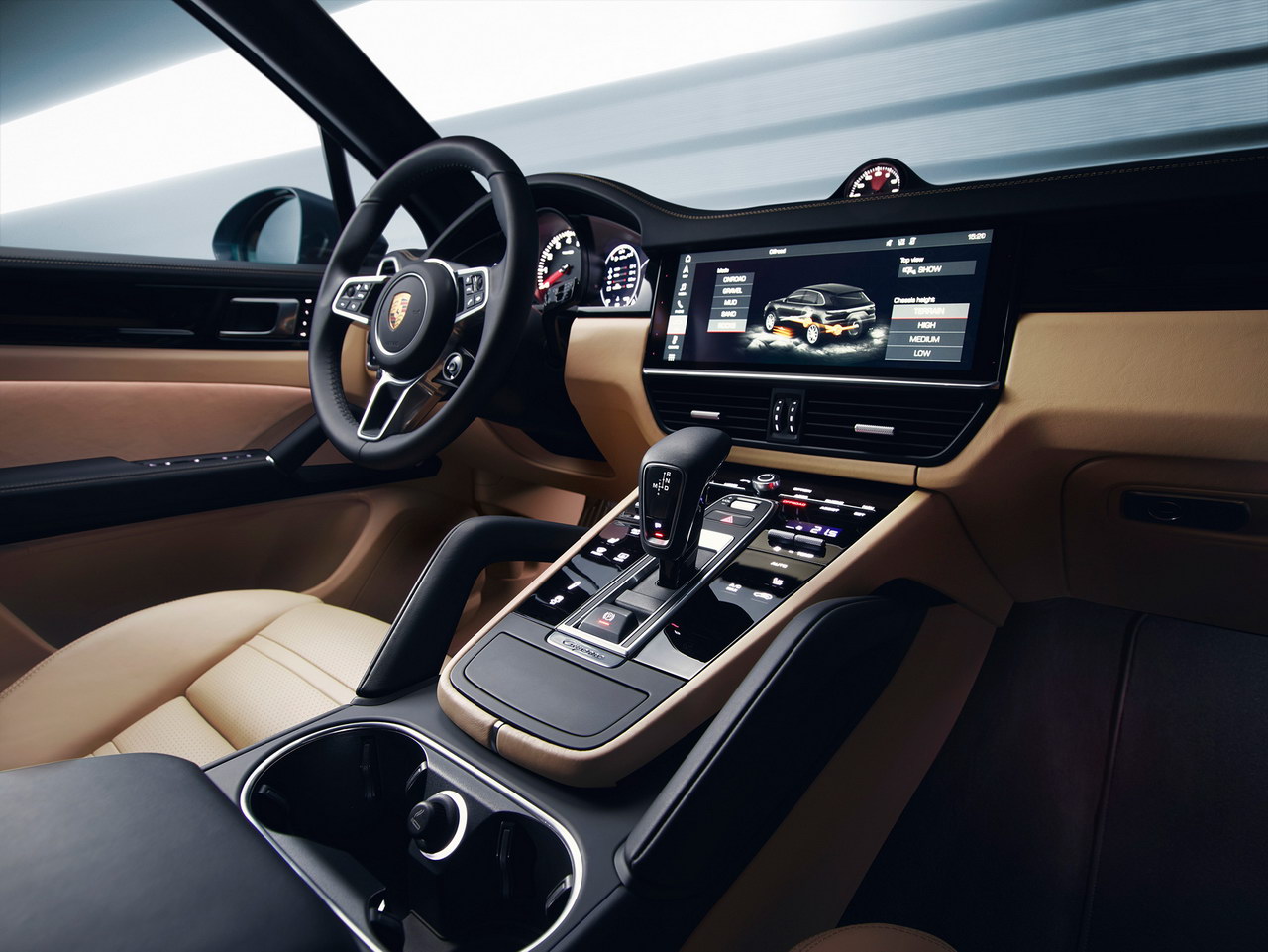 Уже в “базе” Кайенн имеет восемь подушек безопасности, двухзонный климат-контроль, передние кресла с подогревом и электрорегулировками, светодиодную оптику, виртуальная панель приборов, мультимедийный комплекс с сенсорным дисплеем диагональю в 12,3 дюйма, навигацией, поддержкой Apple CarPlay и выходом в Интернет. В качестве опций предлагаются матричные фары, состоящие из 84 элементов, система ночного видения и активный круиз-контроль InnoDrive, использующий данные от радаров, видеокамер и навигации.