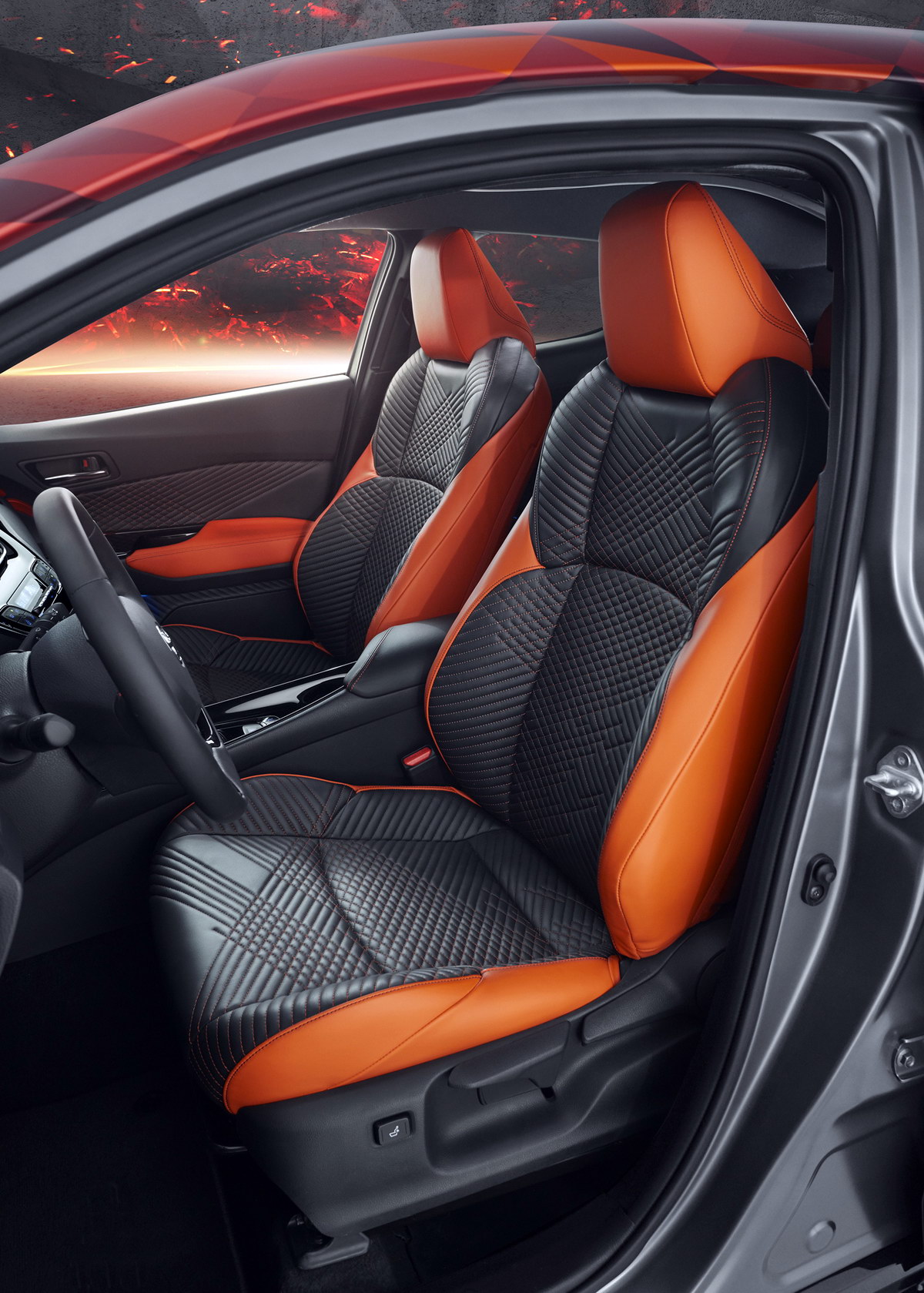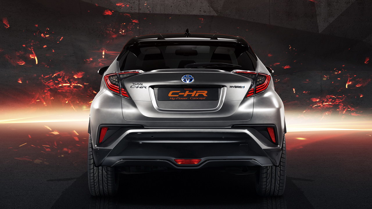Дизайн прототипа разработан в европейской дизайн-студии Toyota ED2, расположенной недалеко от французской Ниццы. От серийного гибрида C-HR Hy-Power можно отличить по кузову цвета Dark Carbon с черными матовыми и глянцевыми акцентами, крыше покрытой черно-оранжевой плёнкой и двухцветным 20-дюймовым колесным дискам.