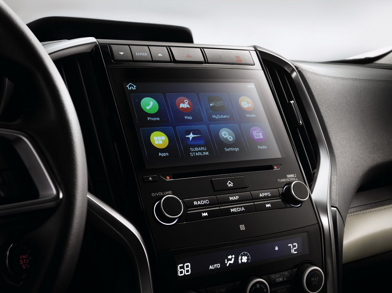 Число мест в салоне может составлять семь или восемь в зависимости от выбранного второго ряда (стандартный диван или капитанские кресла). Предусмотрены вентиляция передних кресел и подогрев на двух рядах, самая большая среди всех Subaru панорамная крыша (1,37 м), климат-контроль на втором ряду, а также 19 подстаканников и держателей для бутылок.
