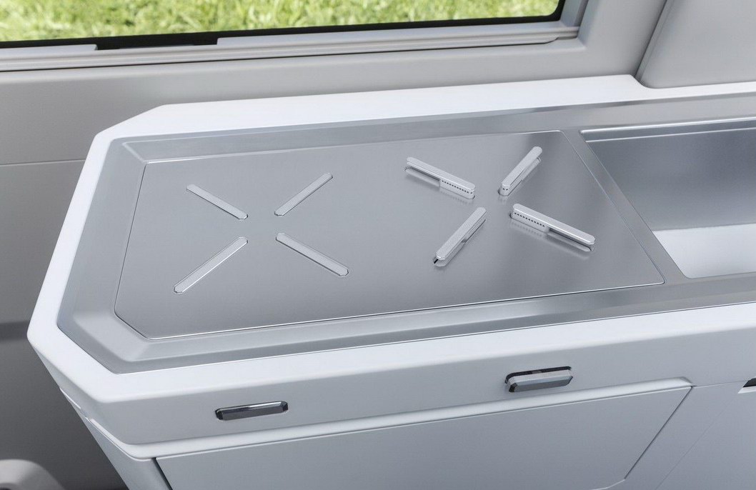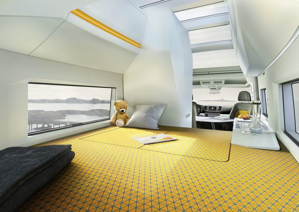 Кроме того, в салоне кэмпера установлены девять розеток на 220 вольт, шесть USB-портов и даже проектор, а системами автомобиля можно управлять с помощью приложения со смартфона или планшета.