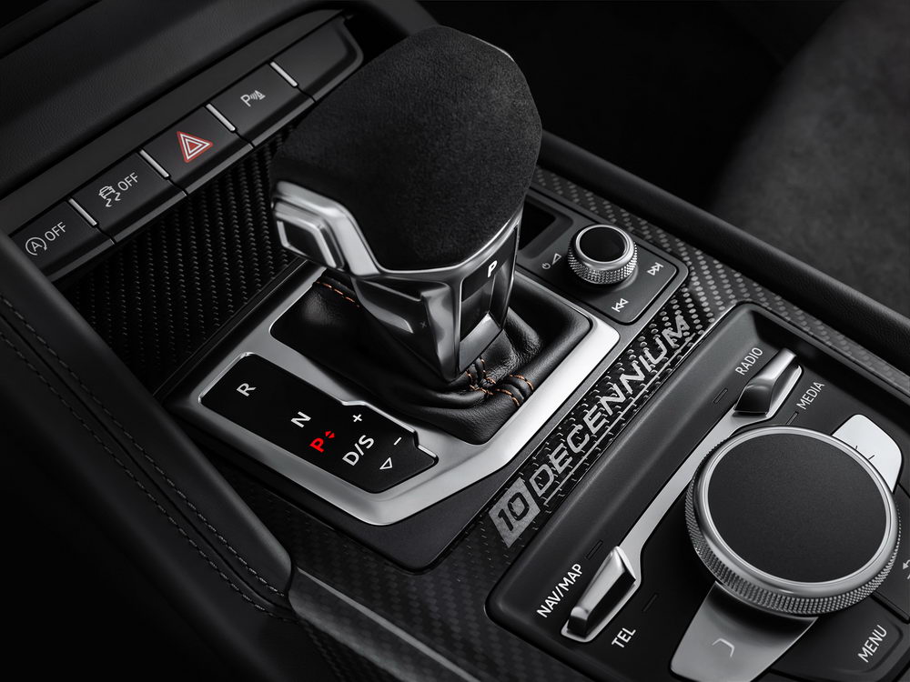 Audi R8 V10 Decennium оснащен самой мощной модификацией 5,2-литрового атмосферника V10, развивающего 620 л. с. и 580 Н·м крутящего момента. Первую «сотню» суперкар набирает уже через 3,1 секунды при максимальной скорости 331 километр в час.
