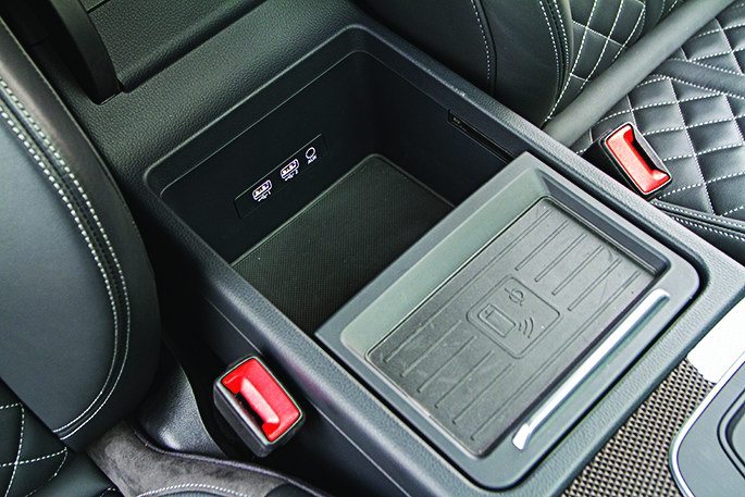 А вот беспроводная зарядка для мобильного мне приглянулась. Во-первых, она не занимает много места, поскольку изящно вписана в сдвижную крышечку, прикрывающую подстаканники на консоли. Во-вторых, может молвить человеческим голосом: если выключить зажигание и открыть дверь, оставив смартфон лежать на зарядке, машина напомнит вам о нем женским контральто.