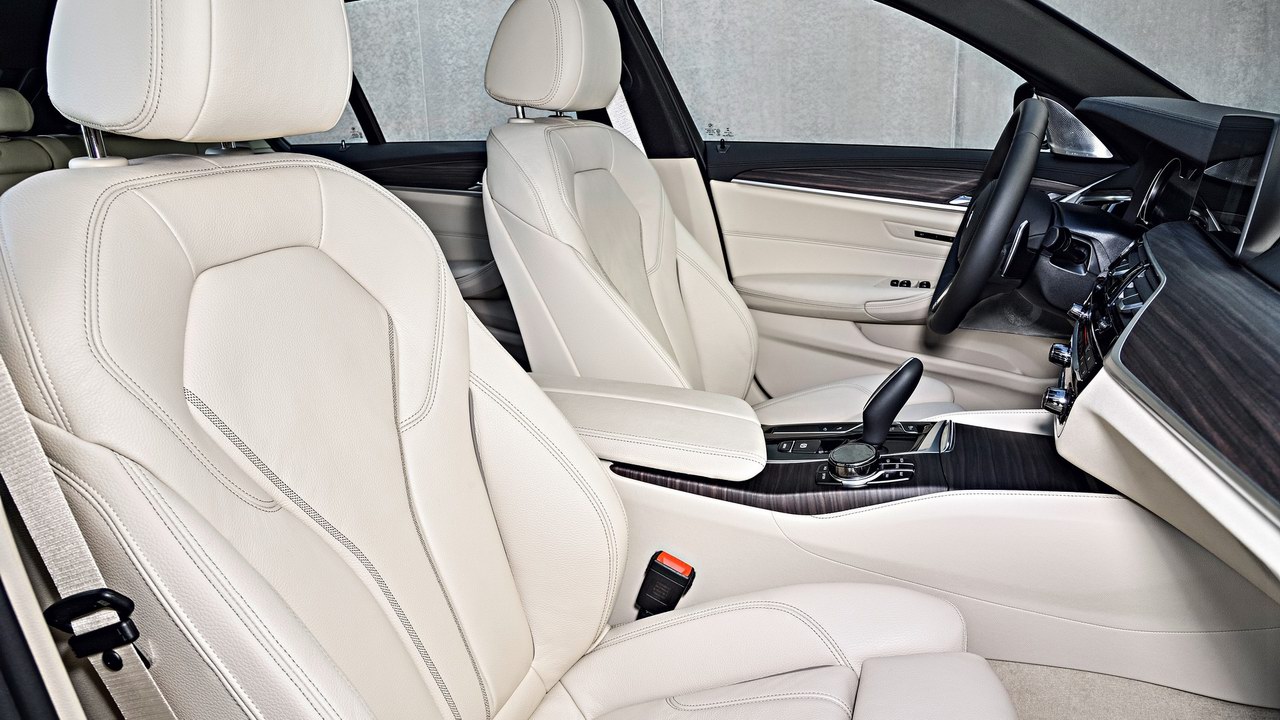 Архитектура салона универсала BMW 5-Series Touring (G31) – такая же, как у одноимённого седана, представленного на днях в Украине. Отметим лишь, что заднее стекло открывается отдельно, а дверь багажника можно заказать с функцией открывания ногой, проведя ею под бампером). В список базового оснащения универсала BMW пятой серии войдут шесть подушек безопасности, система стабилизации, двухзонный климат-контроль, биксеноновые фары, датчики света и дождя, мультимедийный комплекс с аудиосистемой и навигацией, беспроводная зарядка смартфона и легкосплавные колёса.