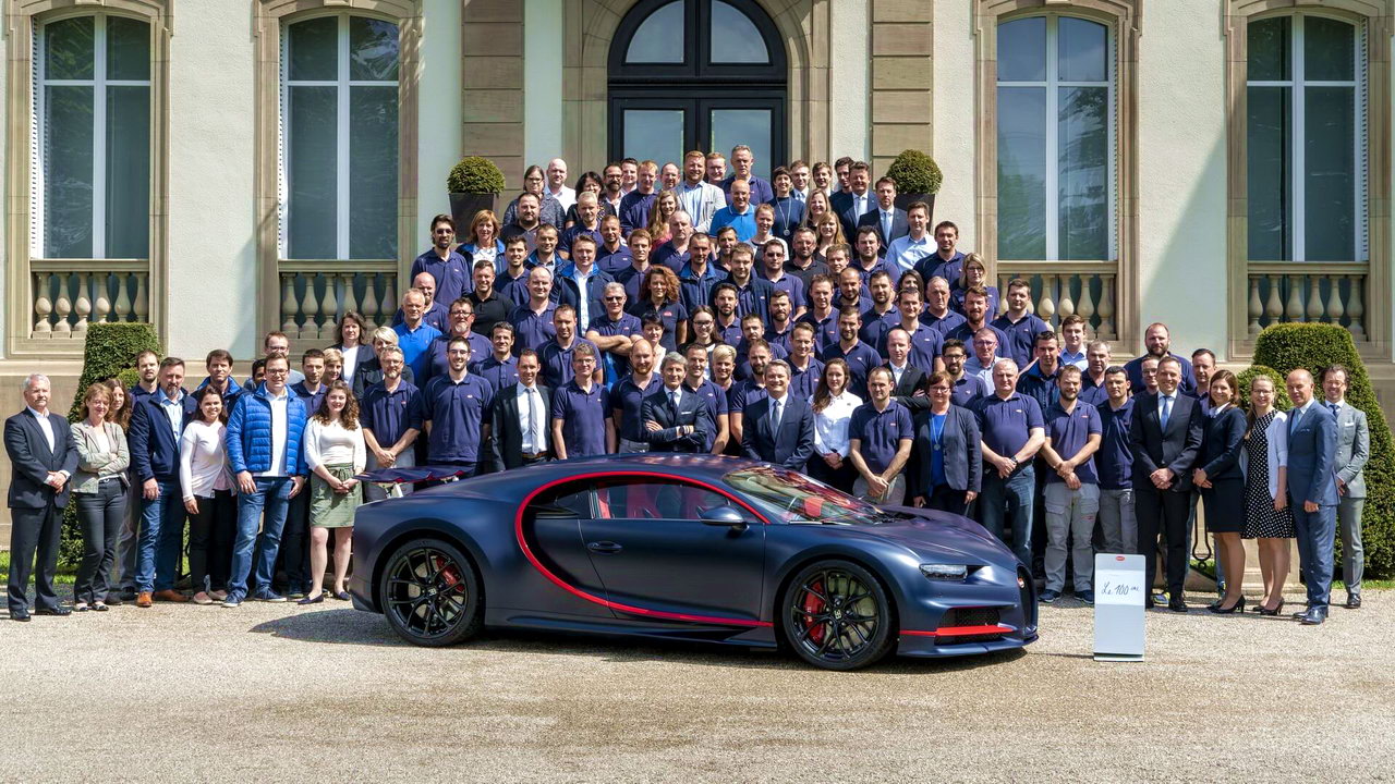 Сотый по счёту экземпляр изготовлен на завод Бугатти в Мольсеме (Франция). Ежегодно стены сборочного цеха под названием L‘Atelier покидает около 70 автомобилей. В данный момент принято заказов еще более чем на 200 штук. Всего тираж Chiron составит 500 экземпляров по цене от 2,4 млн евро.