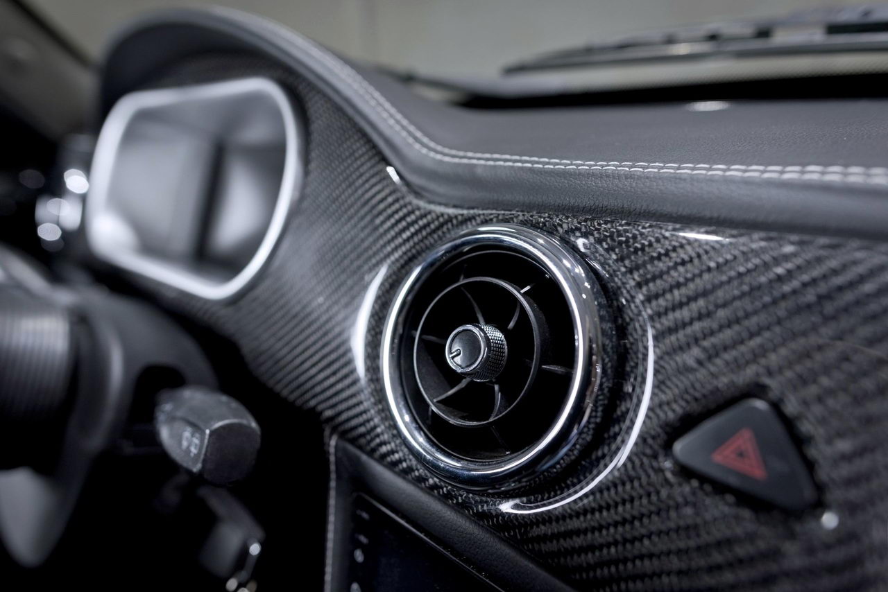 Салон неплохо “нафарширован”: кожаная обивка кресел, отделка карбоном, климатическая система, информационно-развлекательный комплекс с сенсорным дисплеем, навигация и прочее.