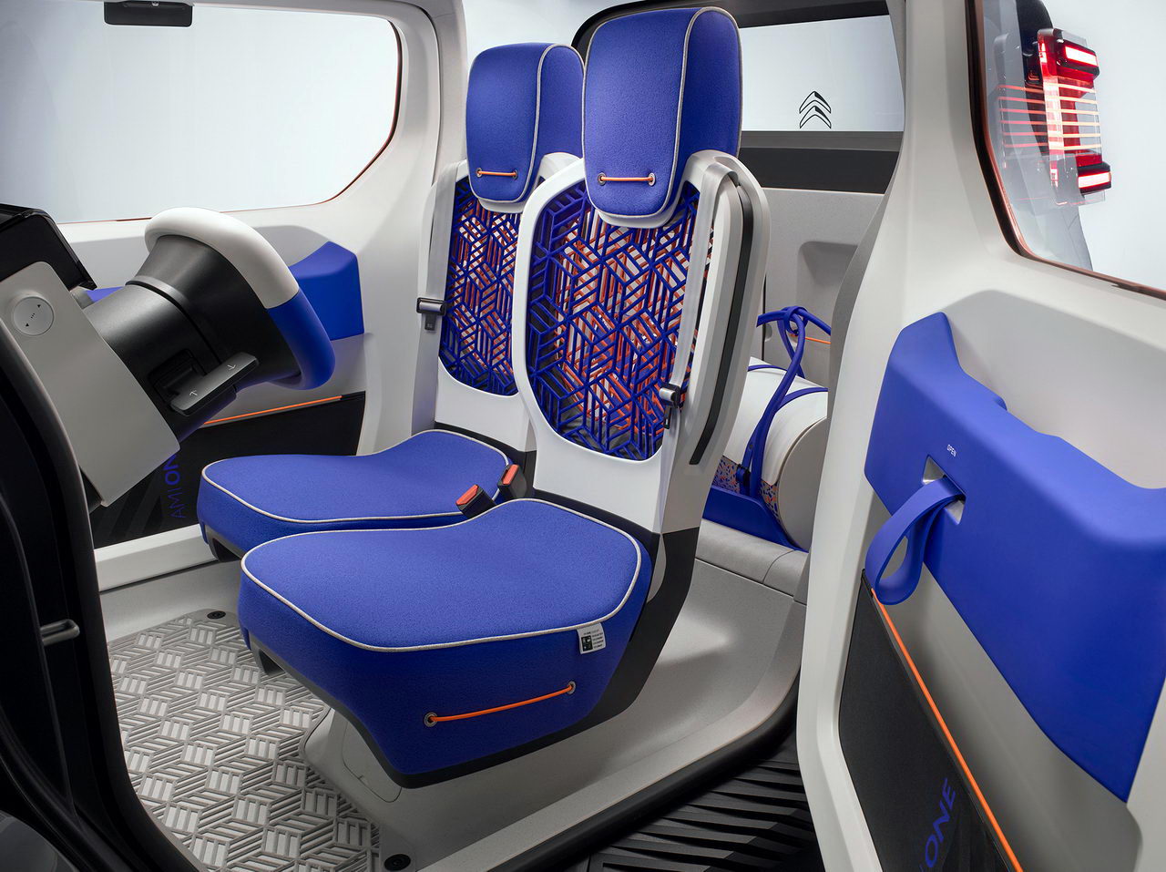 В салоне прототипа установлен пятидюймовый дисплей, а специальный джойстик объединяет в себе кнопку пуска двигателя, клаксон, селектор автоматической коробки передач и динамик Bluetooth с регулятором громкости. В Citroen также разработали для этой машины эксклюзивный багажный набор, в который вошли рюкзак, корзина для покупок и дорожная сумка.