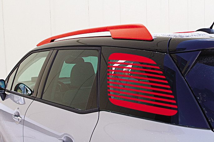 Прежде всего, просторный. Ведь C3 Aircross уже не хэтч а, скорее, универсал. Потому и возникло боковое окно в задней стойке, причем выполненное из поликарбоната. На него, кстати, можно наклеить забавные цветные полоски. Они являются частью комплекта наружной персонализации, куда входят также рейлинги, боковые зеркала и окантовка фар. Все это может быть окрашено в один из четырех цветов: черный, белый, серебристый и оранжевый – по цене от 5 220 до 6 530 грн за все. С учетом того, что сам Citroen C3 Aircross оценен в 460 – 602 тыс. грн, получается, что раскраска кузова обойдется примерно в 1% от стоимости. Не так и дорого, а то и вообще даром, если любите цвет ночи: отделка черного цвета полагается машине по умолчанию начиная со средней комплектации Feel.