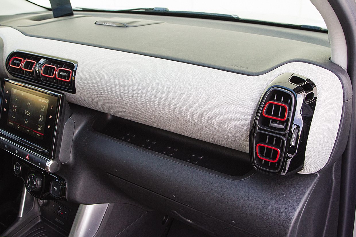 В интерьере кроссовера отличий от хэтча С3 не так много, но они есть, причем заметные. Приборная панель вместо пластиковой окантовки по периметру щеголяет тканевой отделкой, делающей салон намного уютнее.