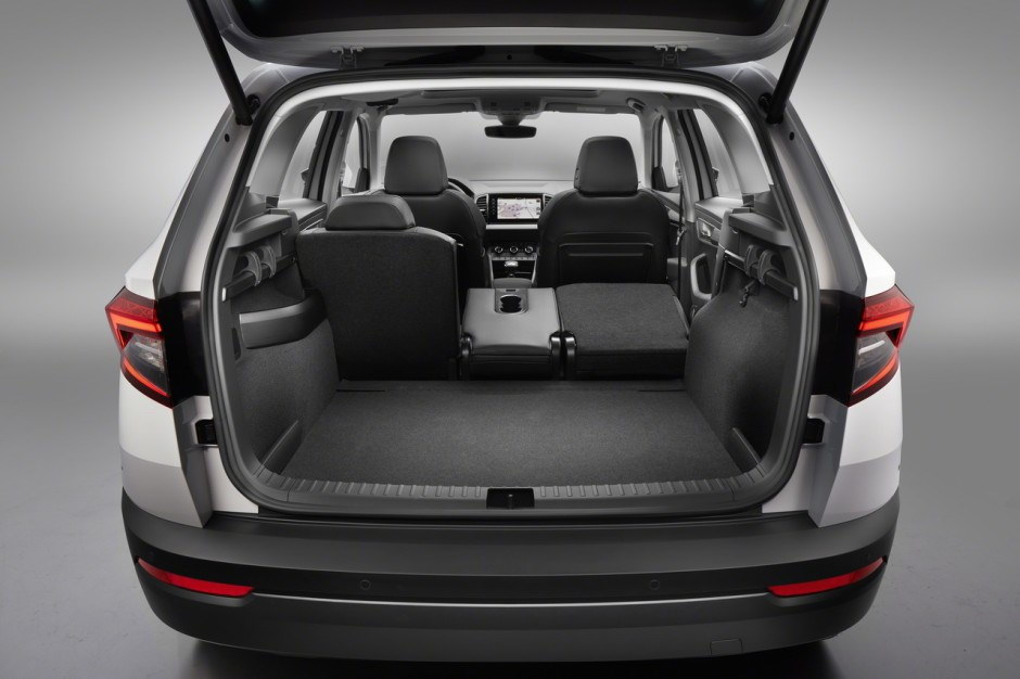 В сравнении с Yeti, новый кроссовер стал крупнее: 4382(+160)х1841(+48)х1605(-86) миллиметров. Колесная база в переднеприводном исполнении 2638 мм, у полноприводных модификаций она равна 2630 мм (у Yeti – 2578 мм). Благодаря этому Karoq получил один из самых больших багажников в классе – он вмещает до 588 литров. При сложенных спинках багажное отделение увеличивается до 1630 л, а если сиденья убрать, то получится 1810 литров. Багажную дверь можно открыть, проведя ногой под бампером.