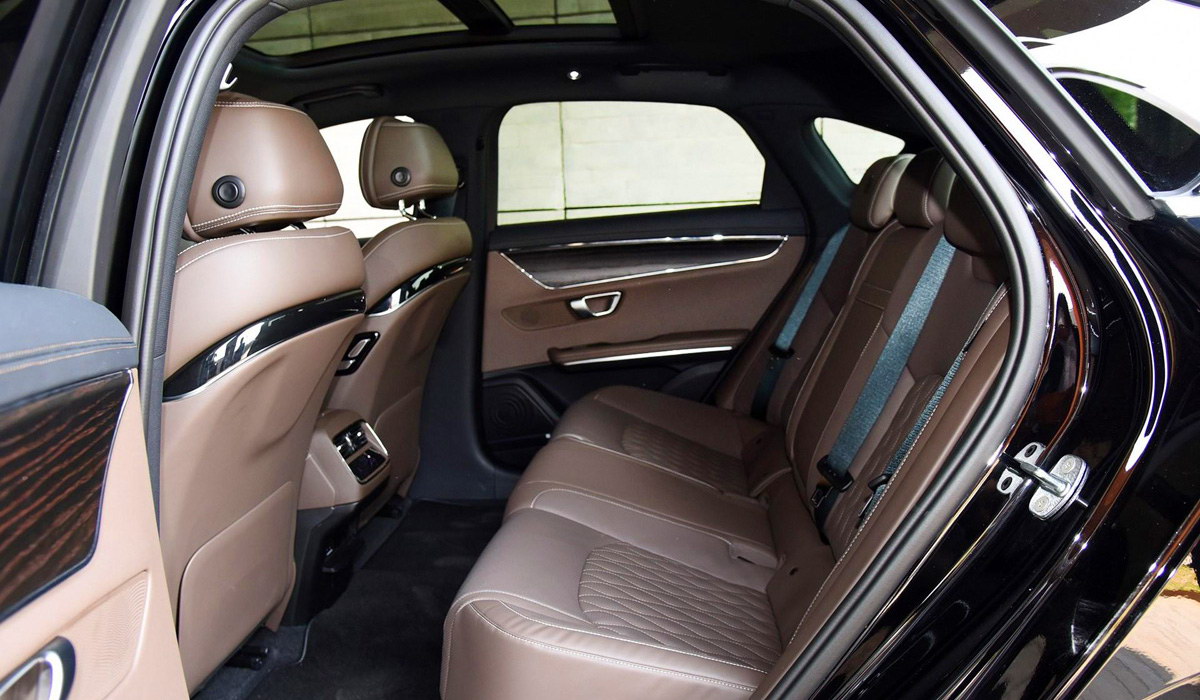 В салоне установлен 15,6-дюймовый экран медиасистемы, который можно развернуть горизонтально или вертикально. Приборная панель – цифровая, диагональю 12,3 дюйма. У задних пассажиров есть свой сенсорный экран, встроенный в откидной подлокотник.