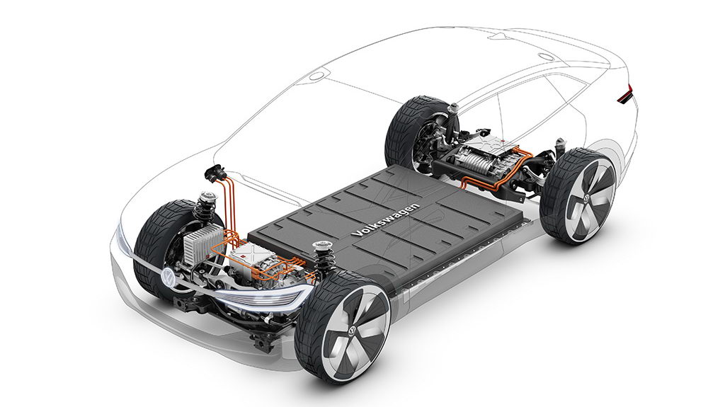 Дело в том, что в электрокаре отсутствие массивного ДВС и трансмиссии позволяет заметно увеличить полезное внутреннее пространство. Электрический кроссовер VW I.D. Crozz получил полный привод 4MOTION, в котором на передней и на задней осях установлено по двигателю: 100 л.с. на передней оси и 200 л.с. – на задней.