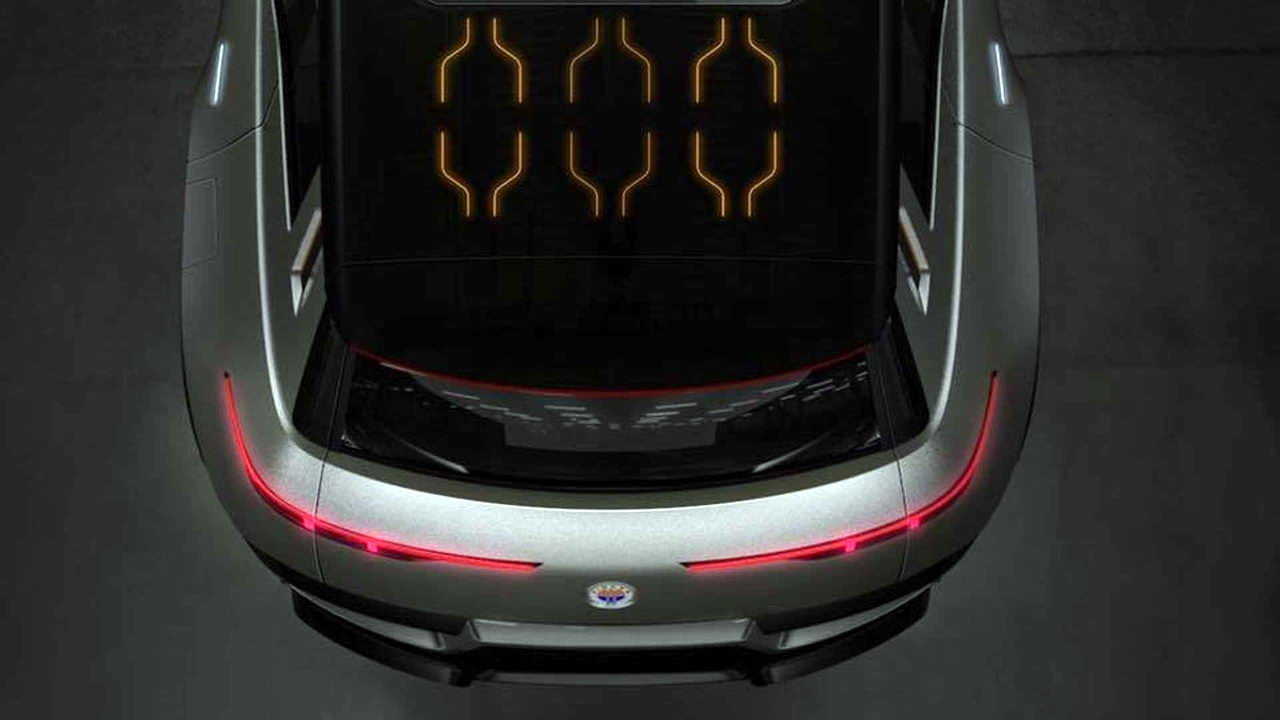 На этот раз в Фискере рассказали о крыше. В нее будут встроены солнечные батареи. Кроме того, две секции потолка убираются одним нажатием кнопки (“полностью открывающийся, но не мягкий верх”). В Fisker эту опцию назвали пакетом «Калифорния», но как именно будет складываться секции не прояснили.