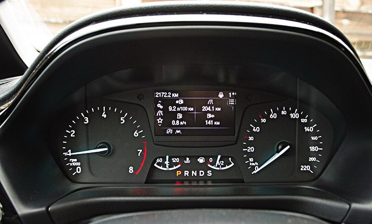Перед глазами водителя – новый щиток приборов, значительно прибавивший и в размерах, и в информативности. Между спидометром и тахометром разместился дисплей бортового компьютера, весьма подробный и легко читаемый. Стрелочных указателя аж четыре: стрелки указывают, помимо скорости и оборотов мотора, уровень топлива и даже температуру охлаждающей жидкости. Отлично, что на информации о ней фордовцы не сэкономили, а ведь такое сейчас встречается сплошь и рядом.