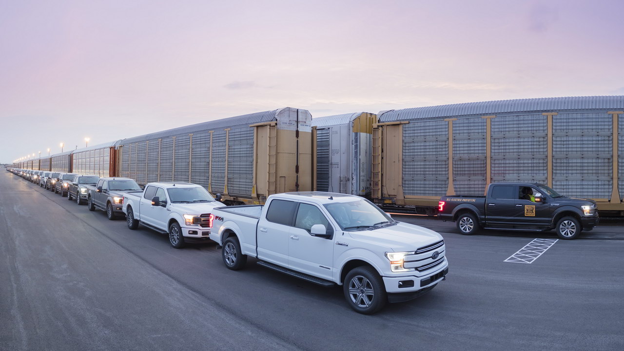 Опытные образцы F-150 EV уже существуют – летом Ford выпустил видео, на котором электрический прототип буксирует 450-тонный поезд, полный обычных пикапов.