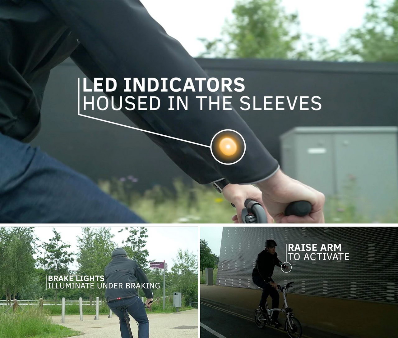 Ну и вишенка на торте – вибрирующие рукава, сообщающие велосипедисту о том, что надо сделать поворот. В них также встроены светодиоды, выполняющие роль поворотников. Кроме того, на спине куртки установлены светящиеся стоп-сигналы, предупреждающие окружающих участников движения о торможении.