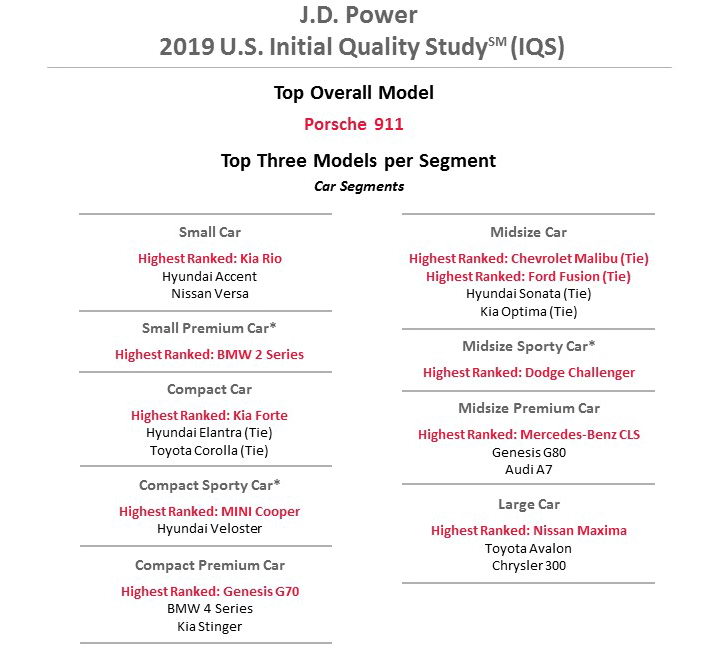 Американская компания J.D. Power and Associates, занимающаяся исследованиями удовлетворенности клиентов, представила свежий ежегодный рейтинг качества новых автомобилей Initial Quality Study.