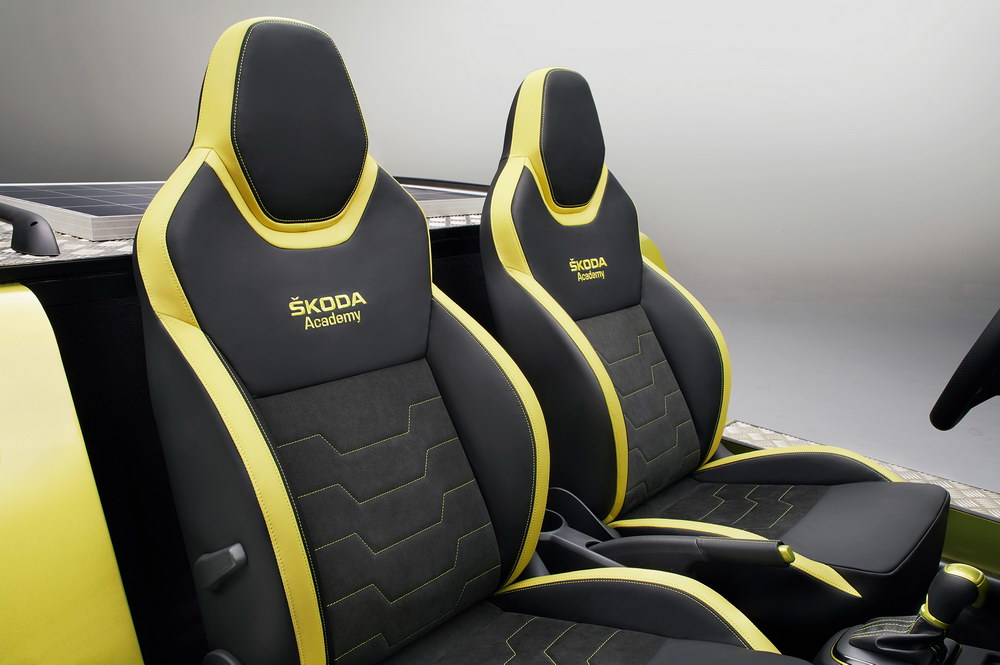 В салоне, отделанном кожей и алькантарой, установлены ковшеобразные кресла, взятые у Skoda Octavia RS. Место задних сидений занимает солнечная батарея, питающая встроенный холодильник. А на корме расположился телевизор Smart TV с четырьмя динамиками суммарной мощностью 400 ватт – для приятного времяпровождения где-нибудь на природе или пляже.