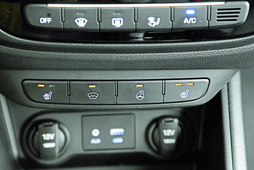 Теперь же, с выходом нового поколения, всё диаметрально перевернулось. Автомобиль получил приметный, динамичный облик с эффектной оптикой. В комплектации столько благ, что, читая список, я поначалу думал – не ошибся ли я, заглянув невзначай в прайс Элантры? Топ-версия Elegance осыпает нас прежде немыслимыми дарами. Ключ можно положить в карман и забыть о нём: двери отпираются клавишами на ручках, пуск мотора – кнопкой. Электроподогрев всех (!) сидений, руля, форсунок стеклоомывателя и полной площади лобового стекла – то, что надо к наступающим холодам. Задний парктроник в комплекте с камерой заднего обзора, причём рисующей динамические направляющие при перекладке руля – с таким арсеналом и новичок запросто припаркуется. Отличная медиа-система с приличным по меркам класса звучанием и очень богатым функционалом: предусмотрено подключение смартфона и Интернет-коннект, а отменная навигация знает проезды по запутанным киевским дворам. Фары с мощной линзованной оптикой светят не хуже ксенона и умеют подсвечивать повороты. И автомат теперь современный – шестиступенчатый.