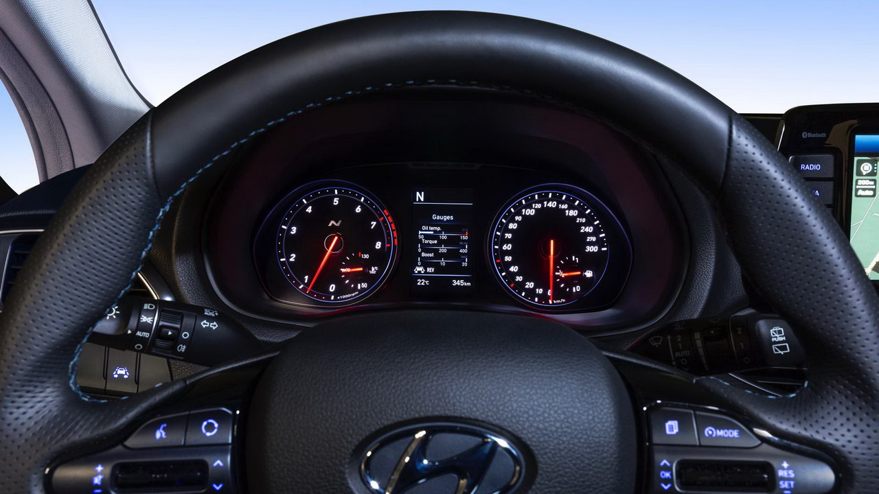 Hyundai i30 N будет доступен в двух версиях. В “базе” хот=хэтч оснащается двухлитровым турбомотором T-GDI мощностью 250 лошадиных сил. С опциональным пакетом Performance этот же агрегат развивает уже 275 “лошадок”. В паре с 6-ступенчатой механической коробкой передач, двигатель ускоряет автомобиль до первой “сотни” за 6,4 секунды в первом случае и на 0,3 с быстрее в более мощном варианте. Крутящий момент в обеих случаях составляет 352 Нм, а максимальная скорость – 250 километров в час.
