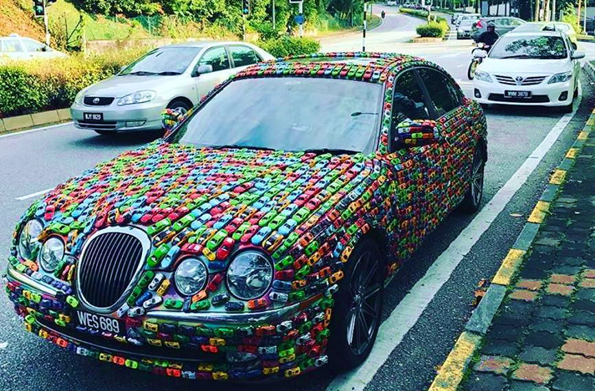Житель Малайзии обклеил Jaguar S-Type масштабными модельками автомобилей.