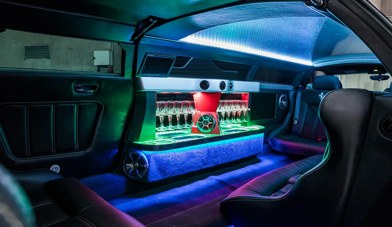 Естественно, пришлось усилить подвеску, а для удобства посадки VIP-клиентов задние двери выполнили в стиле «крыльев чайки». Внутри салона, помимо кожаных кресел, нашлось место для мини-бара и двух телевизоров. А атмосферу вечеринки усиливает светодиодная подсветка.