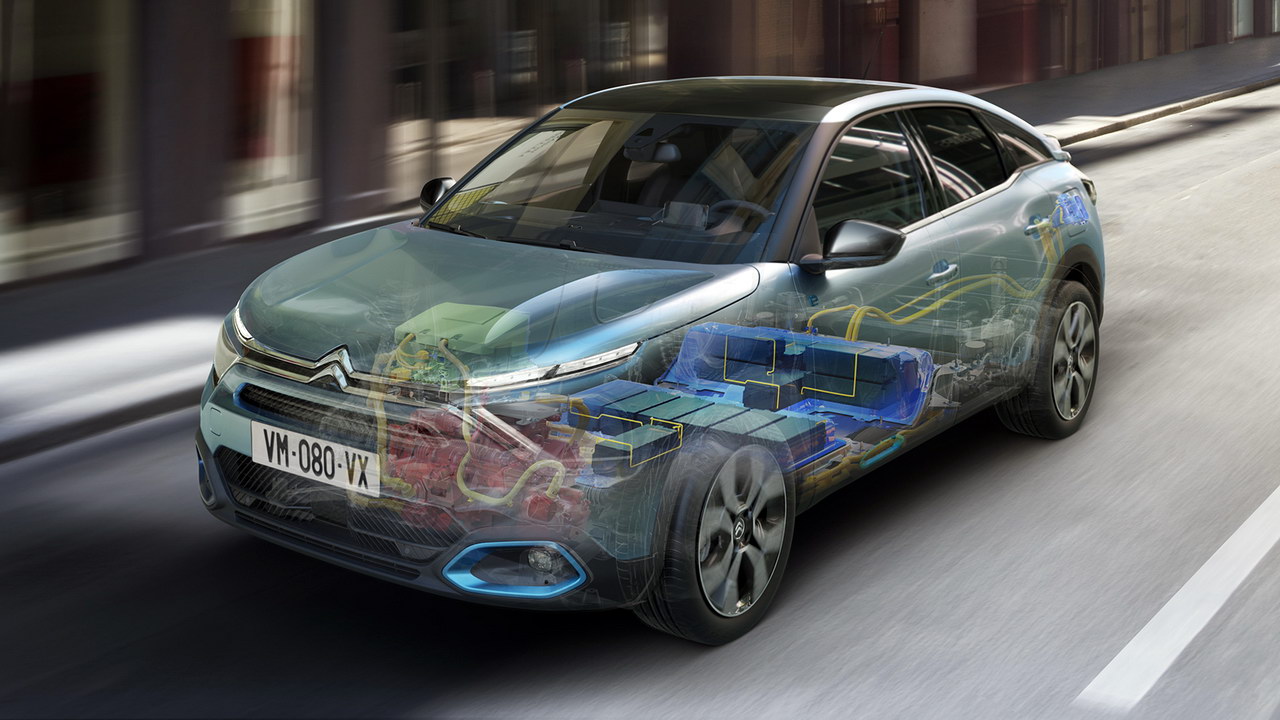 Электрическую версию модели французы назвали ё-С4 и оснастили 100-киловаттным электромотором с батареей ёмкостью 50 кВт∙ч. Силовая установка обеспечивает электромобилю 350 км пробега по циклу WLTP. Подзарядить батарею на экспресс-станциях можно за 10 минут до 100 км запаса хода.