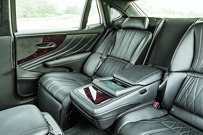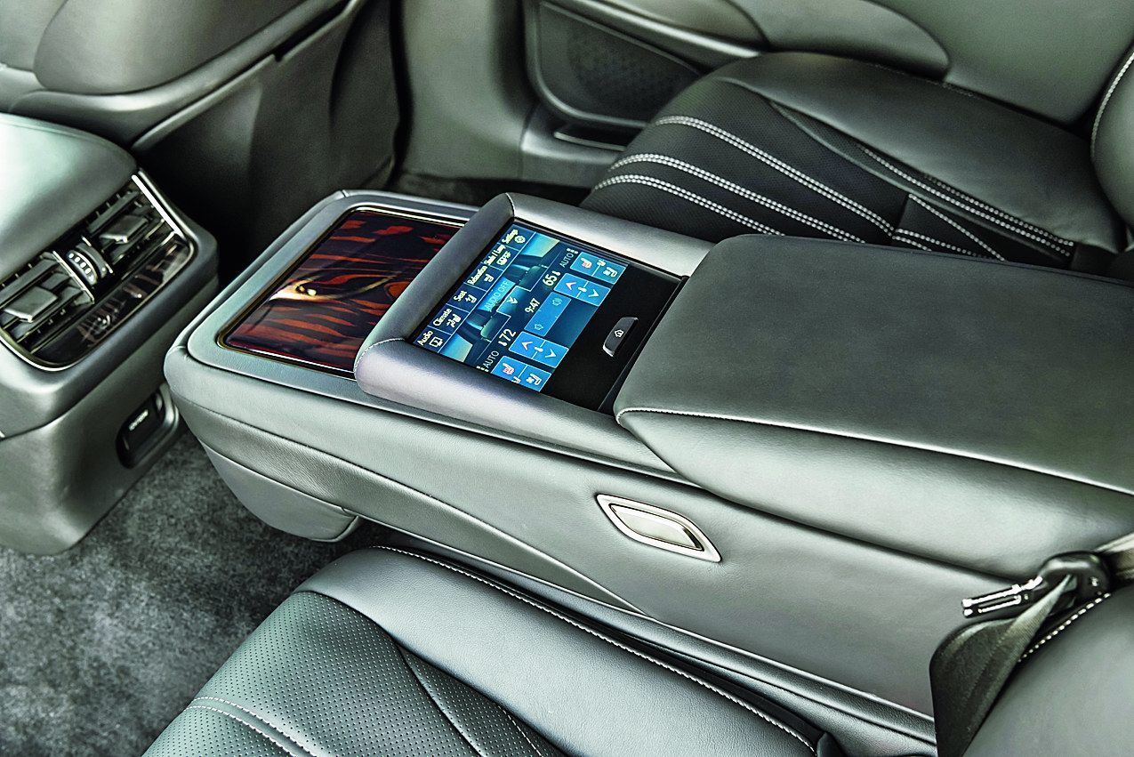 Базовый LS 350, на котором я проехал обратный путь, причем в качестве пассажира,?– исключительно заднеприводный. Но оснащение «триста пятидесятого» может быть очень крутым: доводчики в дверях, мониторы в подголовниках, панорамная крыша… Раскинувшись в шикарном кресле, ритуально отодвигаю от себя переднее пассажирское кресло: подголовник автоматически совершает кувырок вперед, открывая великолепный обзор. Теперь главное действо: выезжает подставка для ног. Ну, трогай, голубчик!