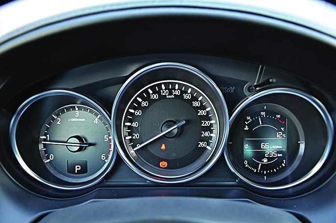 По комфорту обе Мазды хороши, хоть и не без нюансов. Дорожную мелочь тщательней собирает бензиновая: тестовый автомобиль щеголяет колесными дисками в 19 дюймов! Дизельная машина в базовой комплектации довольствуется 17-дюймовыми, не замечает асфальтовых трещинок, но сильнее взбрыкивает кормой при проезде лежачих полицейских, которые бензиновой машине даются легче.