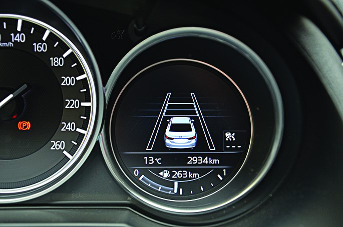 А еще она облегчает водителю шустрое маневрирование в городе – и все благодаря тому же проекционному дисплею. Японцы догадались вынести на него не только указки системы навигации, данные о скорости и дорожных знаках, но и показания датчиков слепых зон. Помеха справа или слева, не видимая в боковые зеркала, отображается на дисплее. И если едущий впереди автомобиль резко затормозит, водителю Мазды 6 не придется вертеть головой в попытке узнать, какой из соседних рядов свободен для экстренного перестроения. Я бы назвал это самой важной функцией дисплея. Однако с ним дизельная «шестерка» оценивается уже в 969 тыс. грн, что делает ее самой дорогой в модельном ряду. Разумеется, это плата не только за экранчик, и все же…