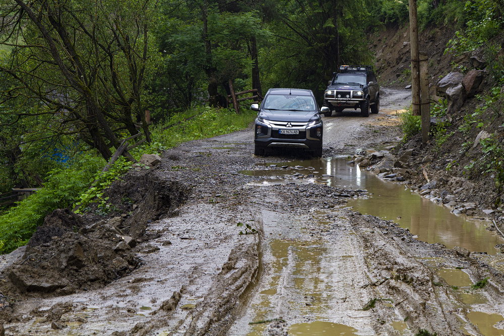 Последствия бушевавшей стихии — повсюду. Огромные камни и груды сошедшей с гор земли на обочинах, разрушенные пешеходные мосты и подмытые дороги. Основные магистрали в окрестностях Яремче и Микуличина уже полностью восстановлены, но второстепенные дороги к небольшим горным сёлам по-прежнему несут следы наводнения. Именно по ним пролегала основная часть нашего маршрута.