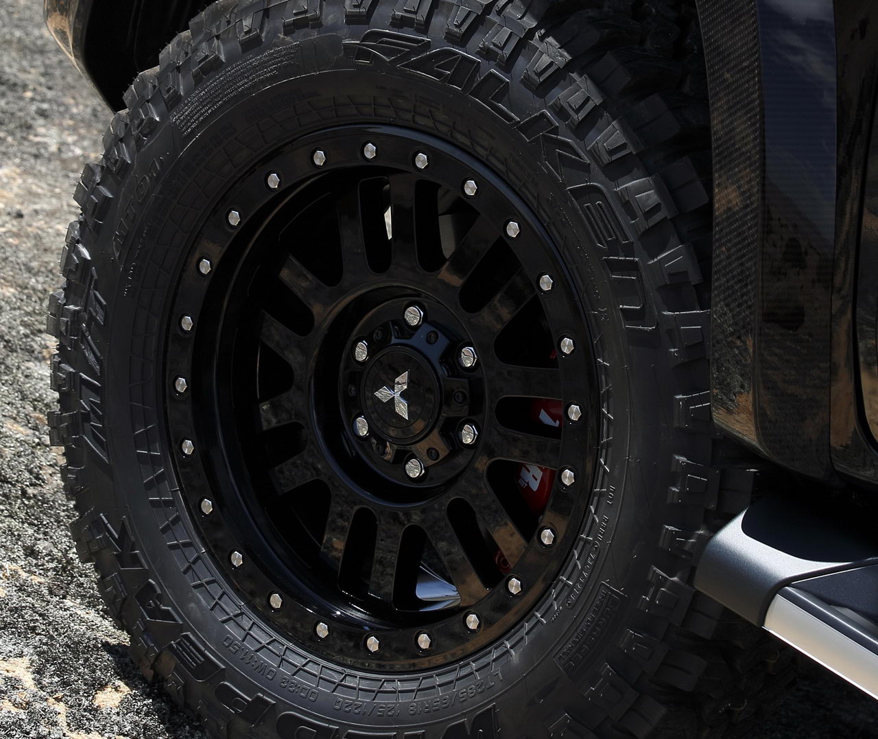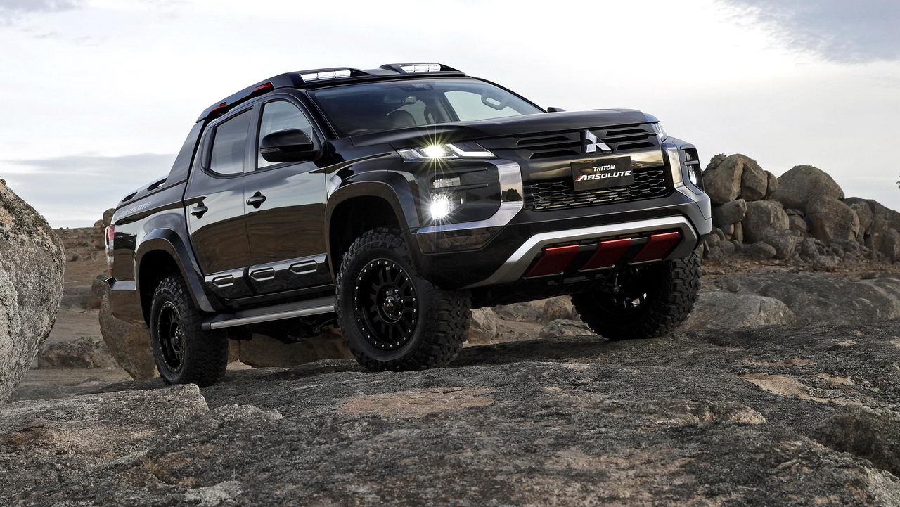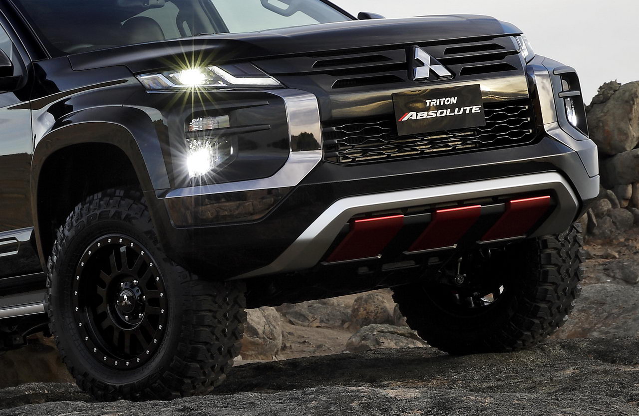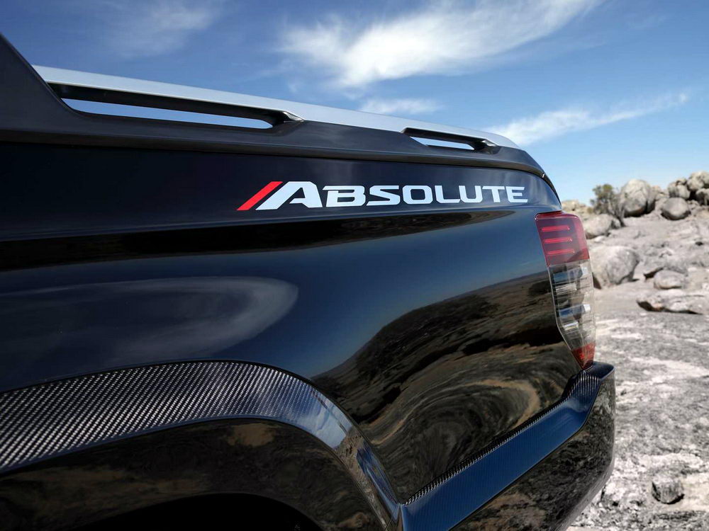 От обычного L200 модификация под названием Absolute отличается увеличенным на 50 мм дорожным просветом – до 270 миллиметров! Кроме того, пикап получил амортизаторы с увеличенным ходом штока, колеса с внедорожными покрышками Falken Wildpeak, оригинальный защитный обвес, грузовую платформу с интегрированными поручнями и диодным освещением и кузовные панели из углепластика.