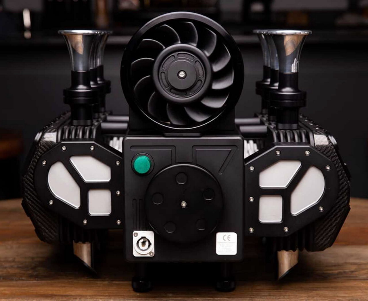 Кофемашина полностью повторяет строение классического шестицилиндрового двигателя Порше, даже материалы, по возможности были использованы оригинальные: алюминий, титан и нержавеющая сталь. Правда, крышку клапанов сделали из углепластика.