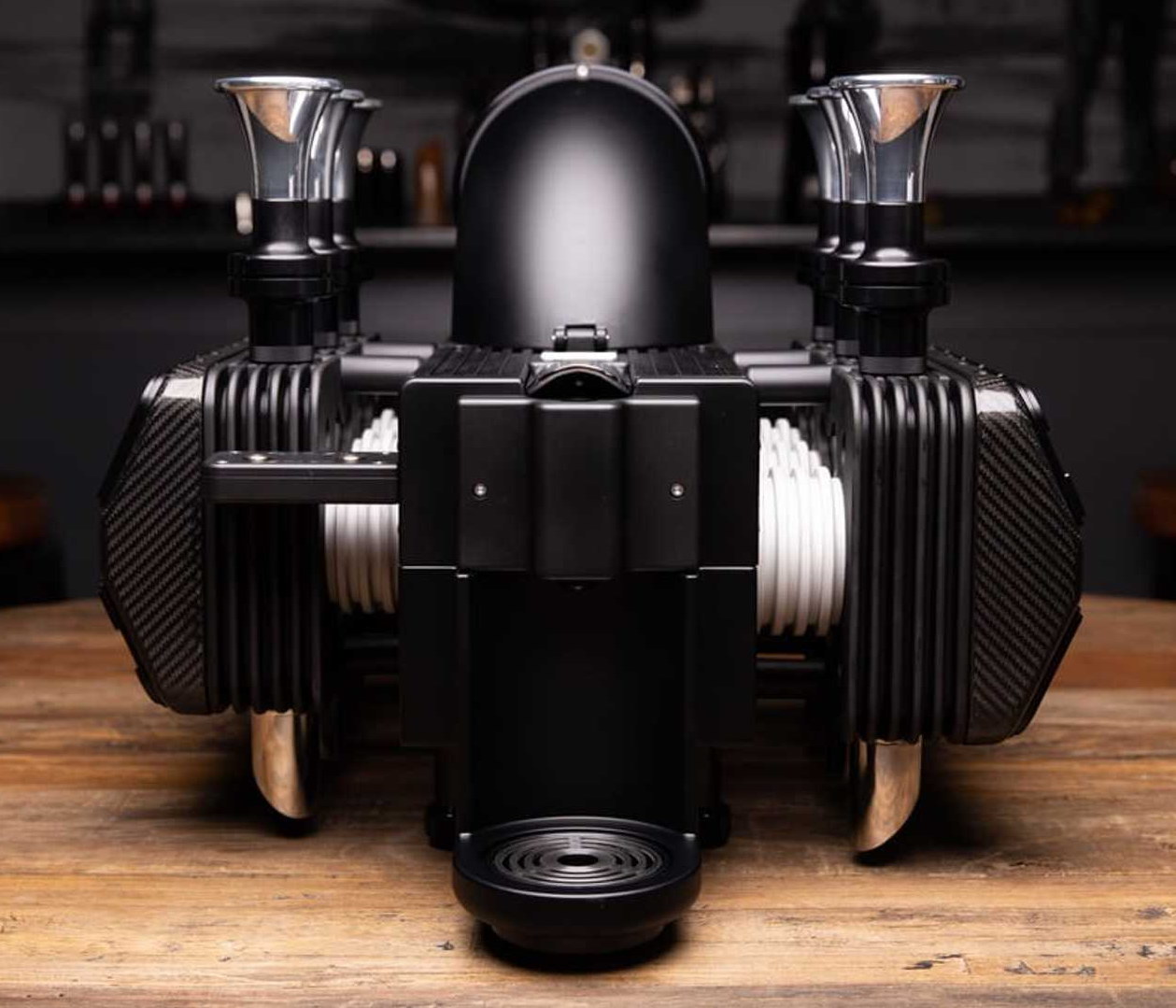 «Гоночную» кофемашину создала компания Super Veloce, владелец которой является давним поклонником автоспорта.