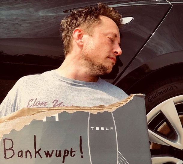 А началось все с первоапрельской шутки Илона Маска. Тогда, в 2018-м, на волне слухов о проблемах Теслы, глава компании написал в твиттере, что подал заявление о банкротстве и “отключился возле Tesla Model 3 в окружении бутылок Teslaquilla.”