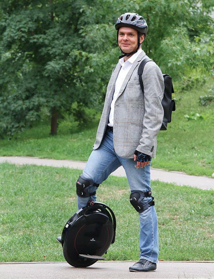 Случаются ли падения? Очень редко. Моноколёсник падает едва ли чаще того же велосипедиста. Особенно если смотрит не по сторонам, а на качество набегающего покрытия. Защита, конечно, не помешает. Опытному ездоку она нужнее, чем новичку, потому как только опытный сможет разогнаться до скорости, при которой с моноколеса уже не удастся, соскочив, устоять на ногах.