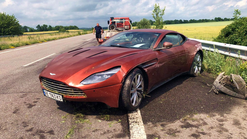 Новейшее купе британской марки DB11 было найдено поврежденным после дорожно-траспортного происшествия. И никого с ним рядом не было.