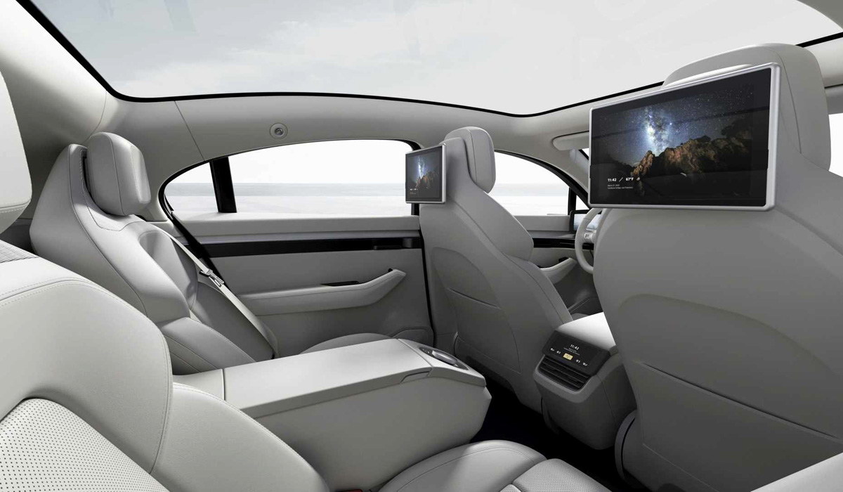 В салоне установлены сразу пять дисплее, крайние из которых играют роль боковых зеркал заднего вида. За безопасностью на дороге следят 33 датчика Отдельная фишка – аудиосистема 360 Reality Audio с динамиками, встроенными даже в сиденья.