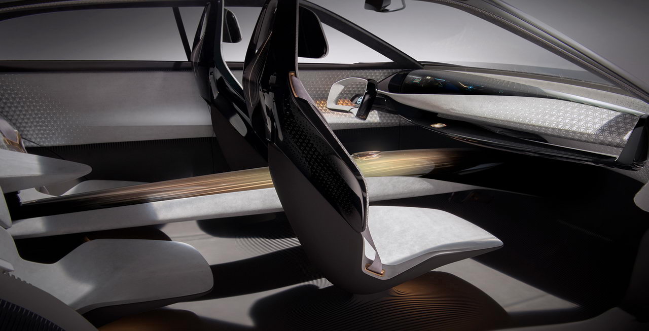 В просторном салоне концепта – полностью цифровая Вместо традиционных приборов – полностью цифровая приборная панель шириной 8,4 сантиметра, четыре отдельных кресла и большой центральный тоннель.
