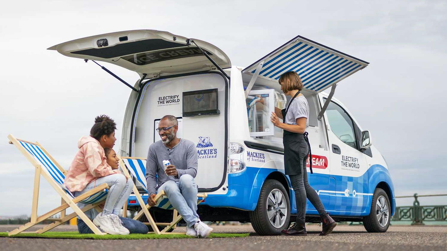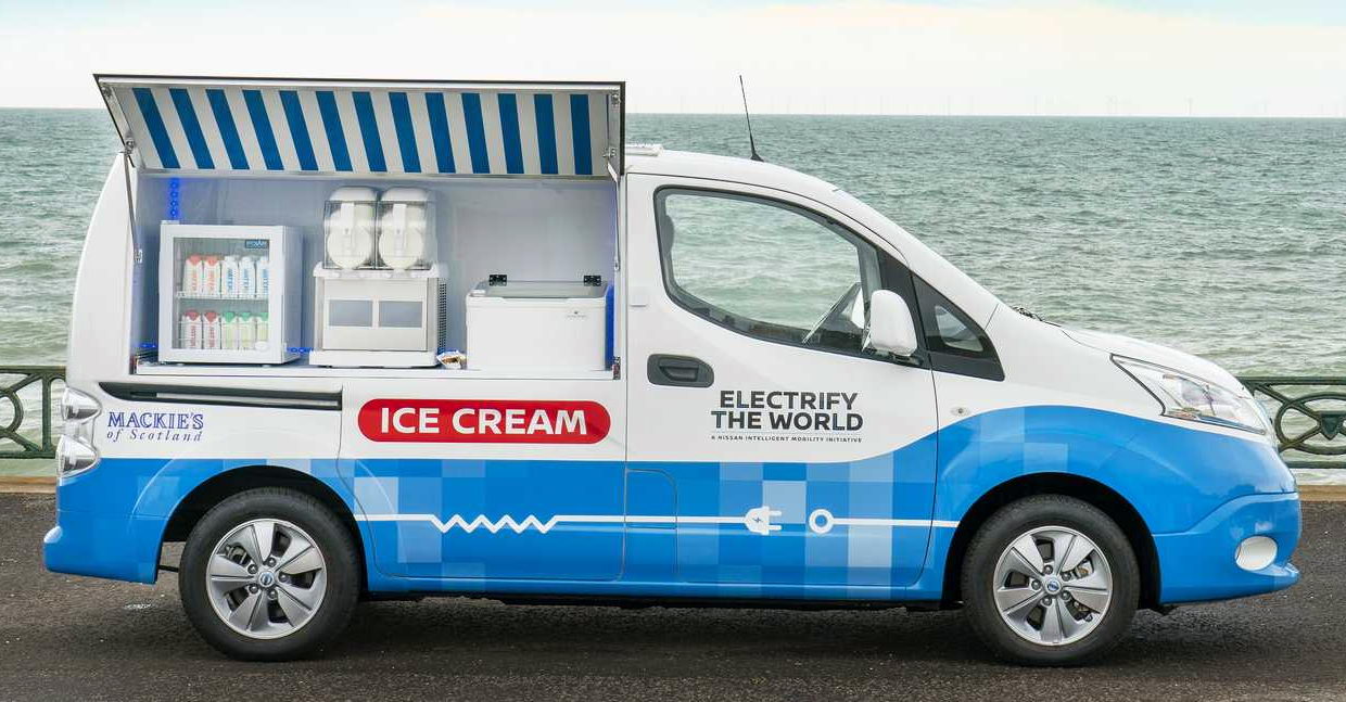 Японская компания Nissan совместно с шотландским производителем мороженого Mackie’s of Scotland выпустила электрический фургон, чтобы продемонстрировать, как сократить вредные выбросы в атмосферу на всех этапах производства и доставки мороженого.