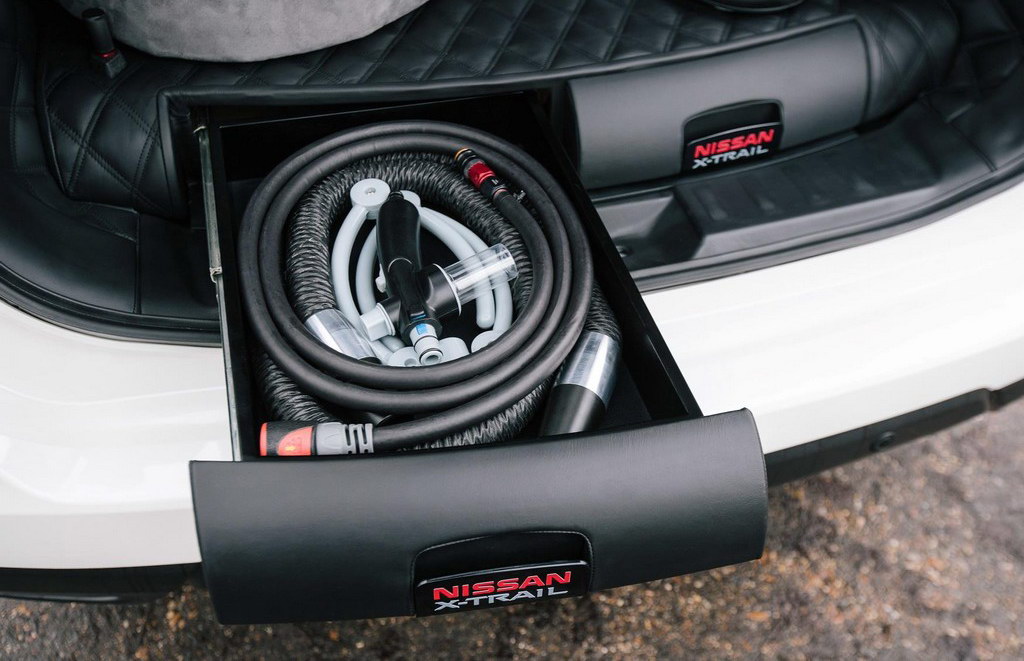 Концептуальный Nissan X-Trail 4Dogs созданный на базе одноименного кроссовера, как раз и ориентирован на собаководов и их четвероногих друзей. При этом, багажное отделение объемом 445 литров превратили в жилую «комнату» для собак. В ней есть «кровать», поилка, специальный дозатор корма и карабин для пристегивания поводка, а в выдвижном ящике под полом хранится портативный душ с подачей воды на 360 градусов и феном. Для того, чтобы животное не замарало лап после помывки предусмотрен специальный трап.