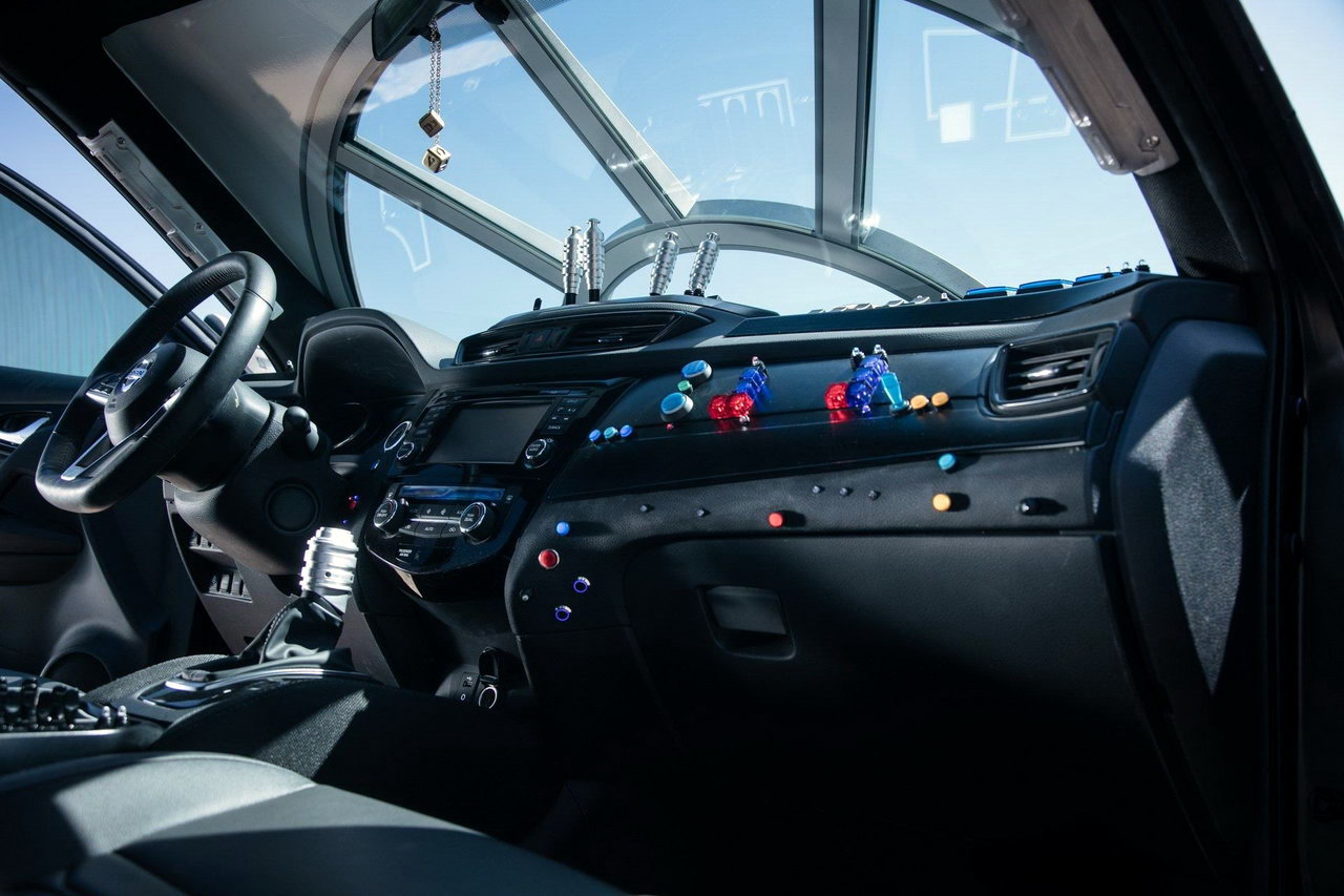 Кроссовер Nissan X-Trail, который в США продается под именем Rogue, снабдили кузовными панелями алюминия, напечатанными на 3D-принтере, а также радарной антенной и даже лазерной пушкой на крыше. Салон автомобиля стилизованный под рубку космолёта изобилует кнопками и переключателями. Нашлось в нём место и для трёх сабвуферов фирмы Bose совокупной мощностью 1500 Вт, расположенных сзади.