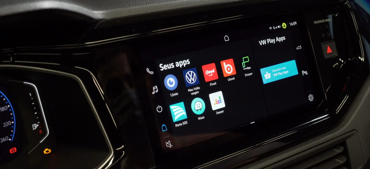В салоне на приборной панели расположился 10-дюймовый дисплей, рядом с которым установлен экран мультимедийной системы на 10,25 дюйма. Но в отличие от Polo, в Nivus от физических кнопок на нем избавились.