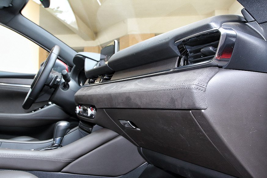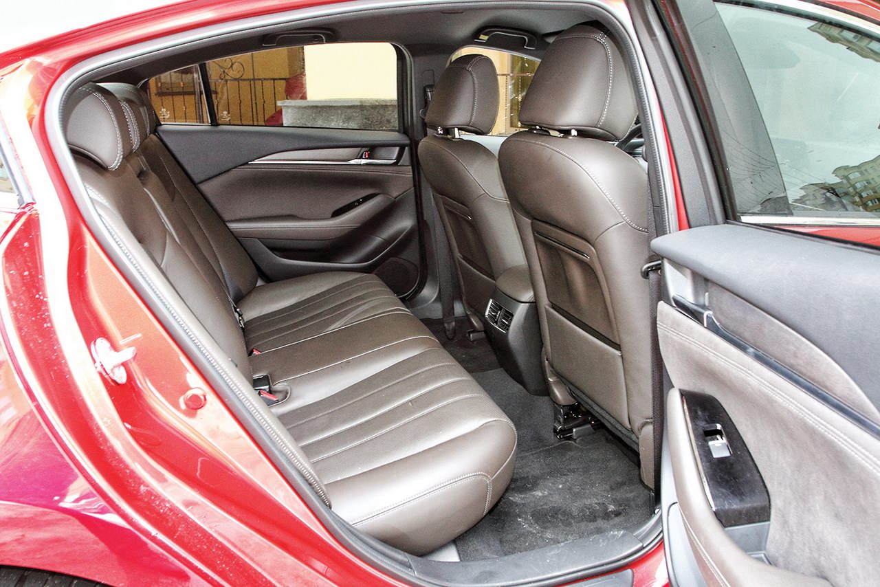 Те, которые заплатят чуть больше миллиона за комплектацию Тор, будут чувствовать себя еще лучше. Во-первых, только в своей топовой версии Mazda 6 рада предложить отделку из натуральной кожи, в отличие от странных кожеподобных комбинаций в оснащениях Style+ и Premium. Пожалуй, первая полностью натуральная кожа в истории модели, и уровень ее выделки не оставляет поводов для придирок. Это Nappa, и она в новой «шестерке» может быть коричневой или белой.